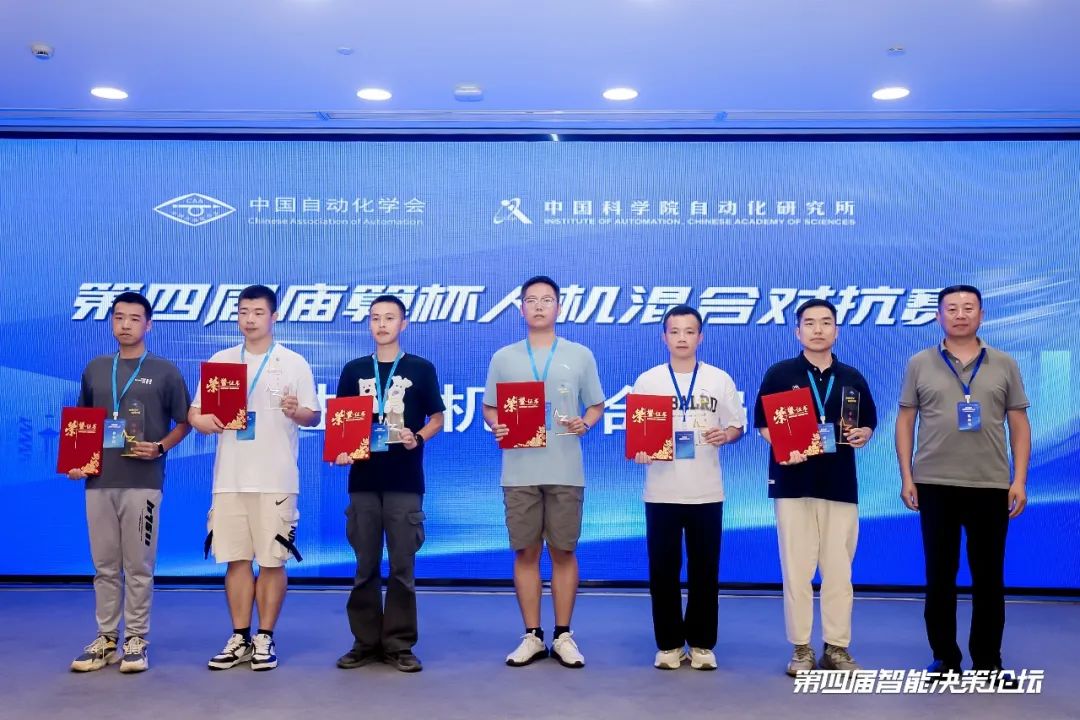 赛事组委会为第四届庙算杯人机混合对抗赛冠亚季军队伍、智能体赛冠亚季军队伍进行颁奖。