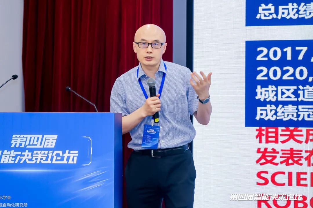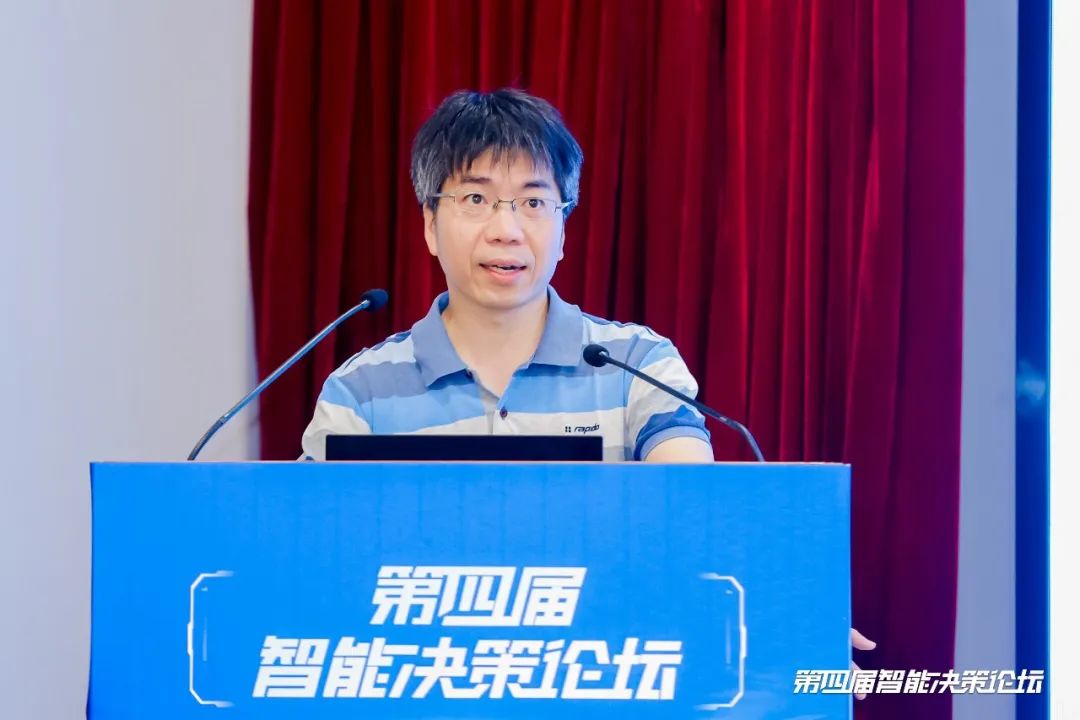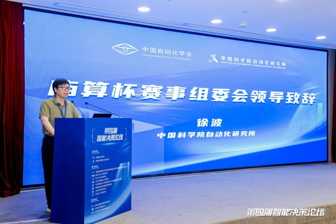 庙算杯大赛组委会主任委员、中国科学院自动化研究所徐波所长为论坛致辞。徐波所长对第四届庙算杯人机混合对抗赛的成功举办表示热烈祝贺,并回顾了赛事四年来的发展历程。他指出:“从2021年至今,‘庙算杯’已从单纯的机机对抗、人机对抗拓展至图灵测试和在线人机混合编组对抗,不断突破技术边界。未来,我们将继续依托‘庙算人机对抗平台’,构建开放共享、协作创新的智能博弈生态,期待与各界同仁携手共创辉煌。”