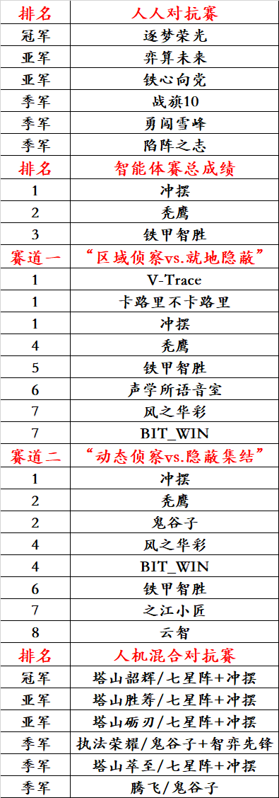 获得智能体赛冠亚季军的队伍