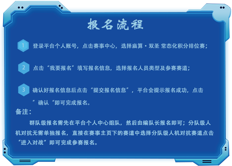 6. 更多赛事信息请查看庙算·双圣 常态化积分排位赛赛事主页:http://wargame.ia.ac.cn/eventDetail?eventId=36